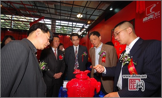 【德化網(wǎng) 訊】?jī)r(jià)值1.8億的根雕、標(biāo)價(jià)7000多萬的神六飛天圖、價(jià)值850萬的刺繡、價(jià)值120萬的奔馳車、價(jià)值200多萬的紫砂壺、國寶級(jí)的德化富貴紅陶瓷、武夷山頂級(jí)名茶大紅袍、壽山石極品田黃、甚至游艇、直升飛機(jī)(非實(shí)物)……各種標(biāo)價(jià)令人咋舌的頂級(jí)“奢侈品”隨處可見,這是記者12日在廈門2008“富貴紅”海峽西岸頂級(jí)生活藝術(shù)展看到的一幕。