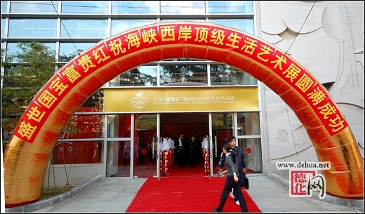 本次展會(huì)由世界奢侈品協(xié)會(huì)中國代表處主辦,福建省富貴紅文化發(fā)展有限公司冠名。德化縣副縣長黃耀昆、富貴紅文化發(fā)展有限公司藝術(shù)總監(jiān)徐少東等出席開幕式并致辭。展會(huì)邀請(qǐng)閩南金三角及海峽西岸各界財(cái)富人士、名流雅士及各知名媒體到場(chǎng),在當(dāng)天晚上還舉辦慈善之夜名流酒會(huì),同時(shí)在酒會(huì)現(xiàn)場(chǎng)進(jìn)行慈善拍賣活動(dòng),現(xiàn)場(chǎng)拍賣部分參展品,所得善款全數(shù)捐給慈善機(jī)構(gòu)。