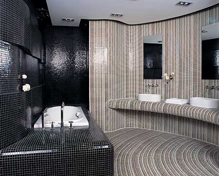 搭配:經(jīng)過極專業(yè)、細心的工藝處理,上萬粒小小的馬賽克高低平整誤差不超過1mm,從墻面延伸至地面的連貫線條沖擊視覺承受的極限。