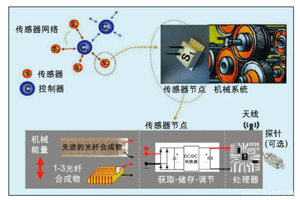 EH本身并不是新概念,諸如手搖無線電、手搖供電的電筒、風(fēng)車和太陽能都是應(yīng)用類似的理念。其新穎之處是將EH應(yīng)用到超低功耗的嵌入式電子設(shè)備中。高電荷壓電陶瓷和光纖合成工藝技術(shù)的結(jié)合使得自供電系統(tǒng)能用在很多種電子系統(tǒng)中。
