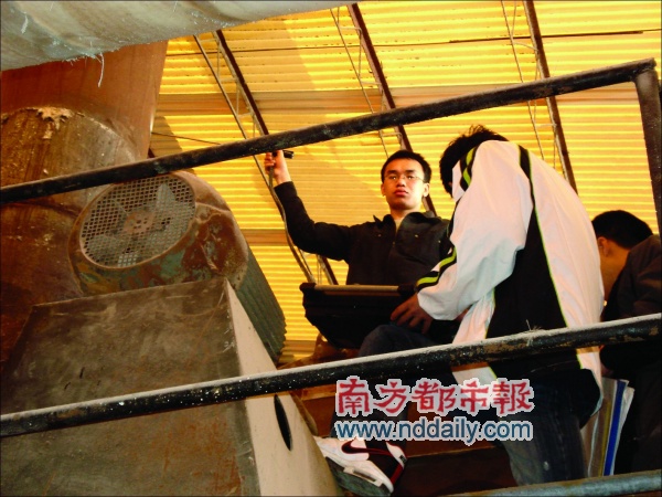 檢查人員在抽檢企業(yè)的二氧化硫排放是否達標。記者湯克琴攝