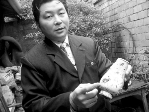 “你看,這個(gè)白釉褐花的瓷瓶釉面光亮,釉色呈乳白色,瓶身布滿了盛開的牡丹花,多漂亮啊。”曹洪激動(dòng)地說,“看到白瓷瓷品,我很震驚,這堪稱陶瓷史上的一大重要發(fā)現(xiàn)。”據(jù)曹洪介紹,為了穩(wěn)妥起見,1月19日在樂山市收藏家協(xié)會(huì)成立大會(huì)上,他特意請(qǐng)眾多陶瓷愛好者現(xiàn)場(chǎng)鑒定,從碎片的質(zhì)地和風(fēng)格大家一致認(rèn)可,這些出土的陶瓷瓷品及碎片屬于白瓷系列。