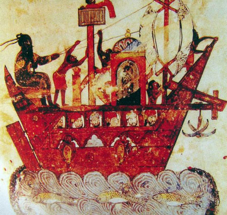 1998年,德國打撈公司在印尼勿里洞島海域發(fā)現(xiàn)了一艘滿載貨物的唐代沉船,船只裝載著運往西亞的中國貨物,僅中國瓷器就達(dá)到67000多件。此次打撈出水大量長沙窯瓷器、金銀器和3件完好無損的唐代青花瓷盤,引起各界轟動。