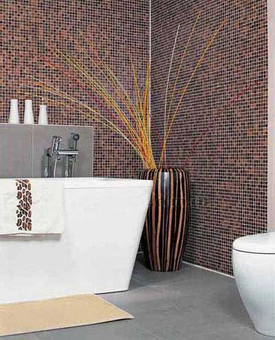 棕色給人一種沉穩(wěn)、高貴之感,大面積的棕色馬賽克和造型硬朗的浴具搭配,營造出平穩(wěn)卻不乏生動(dòng)的空間。以下面的例子為榜樣,現(xiàn)在就拆解棕調(diào)衛(wèi)浴的打造招數(shù)!