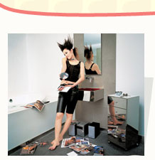 e.浴室里最好能有專門(mén)的儲(chǔ)物柜來(lái)擺放主人所喜好的CD、雜志等。