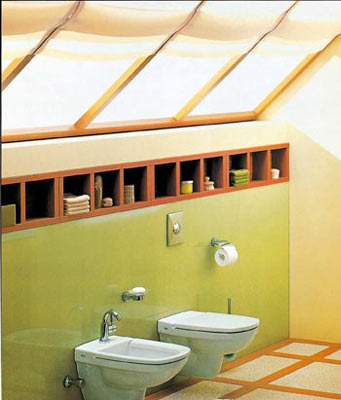 半傾斜式屋頂:可以傾斜屋頂?shù)南旅姘惭b浴缸,充分利用這個(gè)空間。