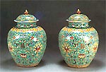 10、由道光時開始出現(xiàn)了作為陪嫁用的五件一套的器物、(即一件瓶、兩件將軍罐、兩件花觚)俗稱“五大件”。