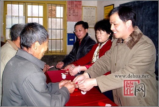 【德化網(wǎng) 訊】 2月2日,福建冠福現(xiàn)代家用股份有限公司到蓋德鄉(xiāng)仙嶺村開展送溫暖活動,為該村65歲以上老年人、孤兒、殘疾人一一送上慰問金和新春祝福。當?shù)弥摯謇夏陮W校由于經(jīng)費短缺,學校設施還不完善,影響了老年人的文化娛樂生活時,林文智總經(jīng)理當場拿出部分資金,解決了該校的經(jīng)費緊張問題。