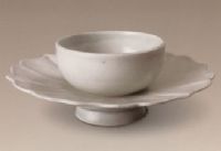 說 明: 此器為一連體盞托,通體施卵白色釉,但釉色白中透青,有失透感。