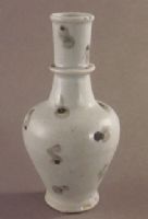 說 明: 器身飾以褐色點(diǎn)彩紋。竹節(jié)唇,直口,長頸。