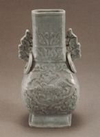 說 明: 此器胎厚潔白,造型顯得特別端莊、古樸、挺拔。釉色白中泛青。