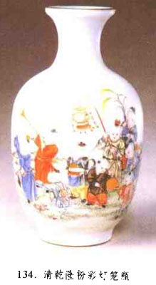 瓶式之一。因形似長圓形燈籠而得名。流行于清雍正、乾隆時期,造型為直口,短頸,豐肩,筒腹,圈足。 (見圖134)