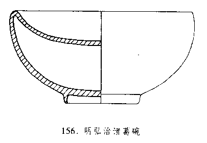 又稱孔明碗,宋、明時(shí)期常見的一種碗式,始見于北宋龍泉窯刻花器。造型為斂口,弧腹,圈足。底與碗心呈雙層夾空、底面有孔與空腹相通。此獨(dú)特造型,源于“三國(guó)”的傳說(shuō):諸葛亮六出祁山,司馬懿屢遭敗績(jī),困守不出。亮修書遣使贈(zèng)巾幗衣物以羞辱之。據(jù)使者回報(bào),懿閱札受禮不怒,卻詳詢丞相寢食辦事之繁簡(jiǎn),繼言:“食少爭(zhēng)煩,其能久乎。”亮為惑敵,乃于對(duì)方來(lái)使刺探時(shí),用雙層碗進(jìn)餐,明示食可盈碗,實(shí)僅上層有飯。后世遂稱此種雙層碗為諸葛碗,亦稱孔明碗。用途為供器。龍泉窯燒造數(shù)量最多,明、清景德鎮(zhèn)也有燒制。(見圖156)