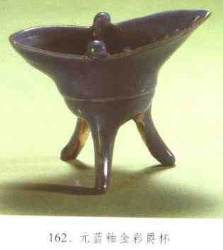 酒具。夏、商、周時代盛行陶質(zhì)或青銅質(zhì)的爵.明清瓷器造型多仿古之作,福建德化、浙江龍泉、江西景德鎮(zhèn)等窯均曾燒制瓷爵,俗稱“爵杯”。器形仿青銅器式樣、用于陳設(shè)或祭祀。(見圖162)