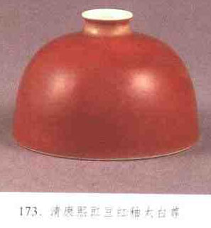 又稱太白壇、雞罩尊,清康熙官窯典型器物之一。因摹仿詩人、酒仙李太白的酒壇,故名。又因形似圈雞用的竹罩,還行“雞罩尊”之稱。造型為小口微侈、短頸、溜肩、腹部漸闊呈半球形,淺圈足旋削得窄小整齊。腹部多淺刻團螭圖案。后世仿品器形規(guī)格與真品相比非大即小,紋飾過于生硬。(見圖173)