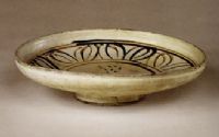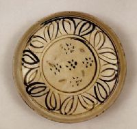 說 明: 通體施釉,盤心飾黑彩葵花紋,白地黑彩裝飾技法。