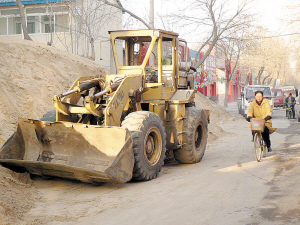 左邊是“沙子山”,右邊是“水泥墻”,一條路只剩一輛機動車通行的寬度,路面更是坑洼不平,這就是記者見到的增光道。由于增光道上增光陶瓷城的經(jīng)營,周邊商家將建筑用的沙石水泥全部散置于道路兩側(cè),使增光里居民和鐵路第二中學(xué)師生苦不堪言。這里的居民反映說,增光道的問題應(yīng)該引起重視了。