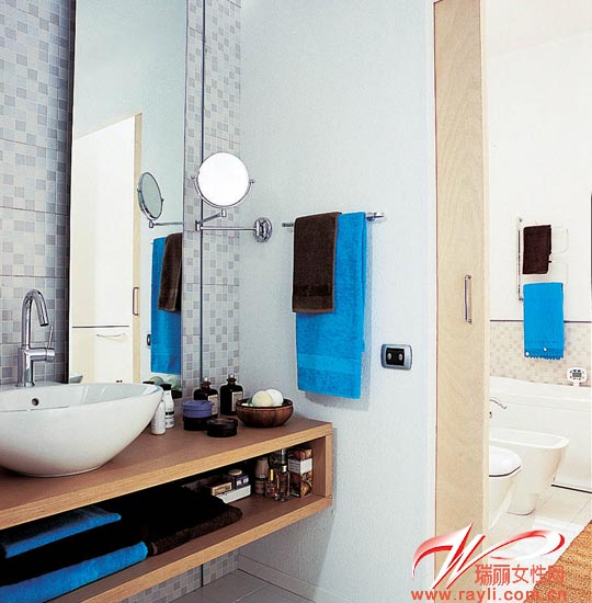 面盆下面的空間完全可以放得下一個(gè)較大的儲(chǔ)物箱,在安排這樣的的儲(chǔ)物方式時(shí),要注意儲(chǔ)物箱的密封效果,并且需要衛(wèi)浴間有較好的干濕分區(qū)。