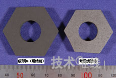 常壓燒結(jié)可一次燒結(jié)出大量燒結(jié)體,因此與熱壓燒結(jié)相比,可大幅提高制造效率(圖5)。另外,還可利用現(xiàn)有的成型法制成所要的形狀、進(jìn)行燒結(jié),所以可將燒結(jié)后的研削加工減少到最小限度。產(chǎn)綜研表示,常壓燒結(jié)法的制造成本在熱壓燒結(jié)法的2/3以下。