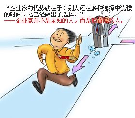 “企業(yè)家的優(yōu)勢(shì)就在于:別人還在多種選擇中猶豫的時(shí)候,他已經(jīng)做出了選擇。”--企業(yè)家并不是全知的人,而是敢冒險(xiǎn)的人。