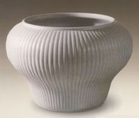 說(shuō) 明: 此器仿宋代汝窯瓷釉色,像竹制魚(yú)簍形,十分端巧秀麗.
