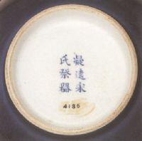 說 明: 藍釉又叫"霽藍",是一種含鈷量百分之二左右的高溫釉.外壁滿施藍釉,釉面滋潤,釉色鮮麗.
