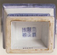 說 明: 此器形制仿青銅器,為雍正官窯青花瓷上品.
