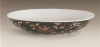 說 明: 此種裝飾源于康熙時期的墨地素三彩,雍正時與粉彩結(jié)合,形成一種新的裝飾紋樣,比較少見.