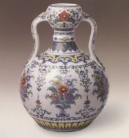 說 明: 此瓶圖案寫實感強,其藝術(shù)效果同釉下青花與釉上五彩相比明顯不同.將粉彩引入斗彩器,是雍正時的創(chuàng)舉.