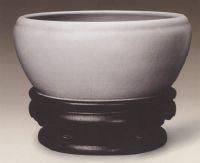 說(shuō) 明: 此器是雍正朝新創(chuàng)的器型之一.由于仿汝釉是高溫釉,仿木紋釉是低溫釉,所以此器當(dāng)分次燒成.