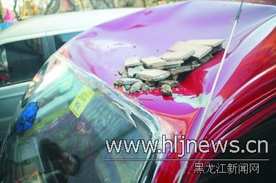 三日,哈爾濱市大鴻圖商務(wù)酒店八樓外墻體瓷磚發(fā)生脫落,停在樓下的七輛車不幸被砸中。