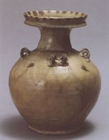 說 明: 胎色淺灰,施青釉,釉色發(fā)黃.造型規(guī)整,線條優(yōu)美.醬褐色斑塊,突破了青釉單一的色調(diào),是制瓷藝術的重大創(chuàng)造.