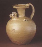 說 明: 通體施青釉.造型新穎.此器在青釉上裝飾褐色斑點,增加了壺的魅力.