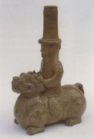 說 明: 造型奇異,通體施青黃色釉,采用印劃方法裝飾器身各部位的花紋,突出圓圈紋飾,這種器物的出現,說明當時的造型工藝及裝飾藝術,都已具有較高水平.