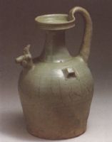 說 明: 南朝.胎呈灰色,施青綠色釉.經(jīng)東晉至南朝,其原來完全屬于裝飾性的實心雞首,已演變成與器體相通之流,器身修長,口頸加高,造型更加適合實用.