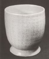 說 明: 胎質(zhì)細膩,釉色青黃滋潤,局部呈藍色.燒瓷作墓志銘為唐代越窯所常見,形式多樣.這是其中的代表作.