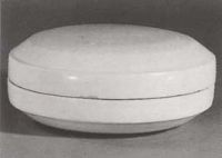 說 明: 胎質(zhì)潔白致密,通體施白釉,僅子口接觸處無釉.此盒制作規(guī)整,工藝水平相當(dāng)純熟.