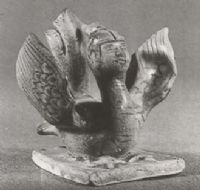 說(shuō) 明: 湖南湘陰窯.胎灰白,釉青黃.造型別致而富于想象.