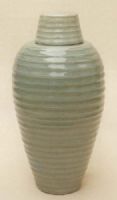 說 明: 胎色灰白,內(nèi)外施青綠釉,釉色晶瑩光亮.通體作凸弦紋,并有小開片.紋飾樸素典雅,構(gòu)思新穎,是龍泉窯斷代的標(biāo)準(zhǔn)器.