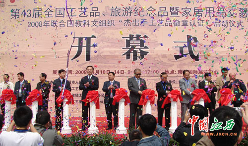 4月10日,第43屆全國工藝品、旅游紀(jì)念品暨家居用品交易會在南昌舉辦。圖為交易會開幕式現(xiàn)場。