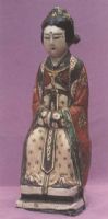 說 明: 胎色潔白,施滿釉,色白瑩潤.衣著施紅、黃、綠、黑等色彩,色彩艷麗,皆屬釉上彩繪.是中國早期的五彩瓷器,為明清釉上五彩瓷的發(fā)展創(chuàng)造了技術(shù)條件.