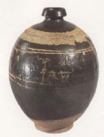 說 明: 此瓶器圓渾,特別是由下向上內(nèi)斂的蘑菇形式小口,是北宋的制作風(fēng)格.西夏瓷器制品,現(xiàn)存很少.