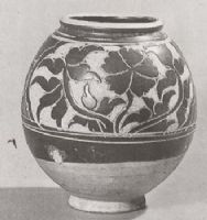 說 明: 腹部施褐色釉,口、下腹及圈足不掛釉.為珍貴西夏文物.