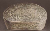 說 明: 畫面之外的空白處用鐵工具印戳珍珠地.紋樣生動(dòng)細(xì)膩,構(gòu)圖清新活潑,具有強(qiáng)烈的民間生活氣息.