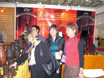 4月10日,聯(lián)合國(guó)教科文組織官員在南昌舉行的第43屆“全國(guó)工藝品、旅游紀(jì)念品暨家居用品交易會(huì)”欽州展廳參觀欽州坭興陶工藝品。欽州市有13件坭興精品參評(píng)此屆交易會(huì),同時(shí)該市還有100多件作品參展。