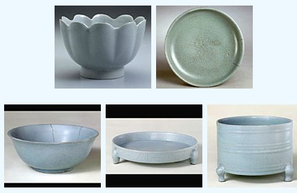宋代“五大名窯”之一,為冠絕古今之中國磁器名窯。窯址在今河南省寶豐縣清涼寺,宋時屬汝州,故名。汝窯以燒制青釉瓷器著稱,宋人葉寘在《坦齋筆衡》中記載:“本朝以定州白瓷器有芒不堪用,遂命汝州造青窯器,故河北唐、鄧、耀州悉有之,汝州為魁。”可見汝窯是繼定窯之后為宮廷燒制貢瓷的窯場。其器物多仿青銅器及玉器造型,主要有出戟尊、玉壺春瓶、膽式瓶、樽、洗。胎體細潔如香灰色,多為裹足支燒,器物底部留有細小的支釘痕跡。釉色主要有天青、天藍、淡粉、粉青、月白等,釉層薄而瑩潤,釉泡大而稀疏,有“寥若晨星”之稱。釉面有細小的紋片,稱為“蟹爪紋”。汝窯燒宮廷用瓷的時間僅20年左右,約在北宋哲宗元祐元年(1086年)到徽宗崇寧五年(1106年),故傳世品極少,被人們視為稀世之珍。
