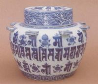 圖片名稱: 青花梵文出戟蓋罐