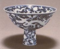說 明: 此器是在未干的坯體上先刻劃花紋,然后用青花染地,再施釉燒制成藍地白花紋飾,使紋飾更生動活潑,是在元代基礎上發(fā)展起來的.