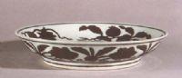 說 明: 白釉刻填醬釉花紋瓷器在宣德時(shí)已出現(xiàn),至弘治時(shí)制作更趨精美.醬色和白釉相映,色彩對(duì)比新穎,為仿宣之妙品.