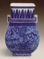 說 明: 頸部紋飾層次感強(qiáng),回紋則顯得古樸莊重,器身海水紋氣勢宏大,且釉色穩(wěn)定、深厚.